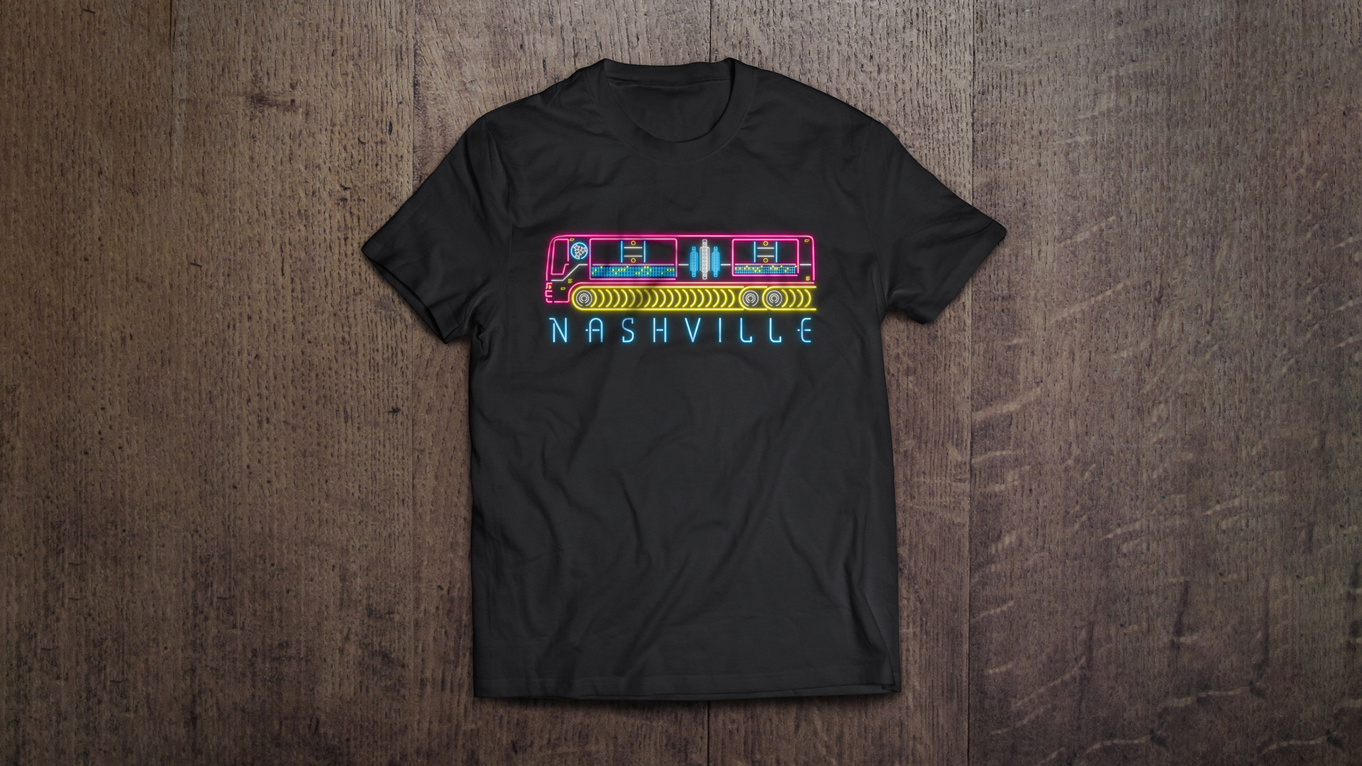 Incorporating the omnipresent tour buses, a symbol of Nashville's constant motion and ever-evolving music scene, our design invites you to embark on a visual journey through the city's rich musical history. The blend of sleek lines and bold forms pays tribute to the enduring legacy of the artists who have graced these streets, leaving their mark on the world of music. With each glance, you'll feel the echoes of legendary performances and the promise of future stars.